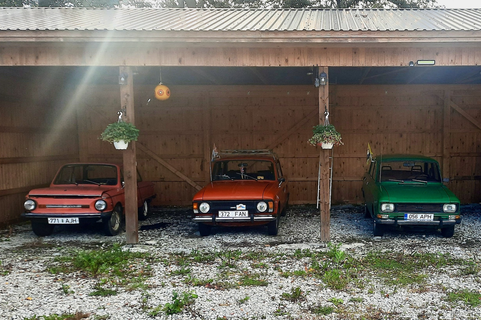 Auto jõudis oma uude koju küll juubelist hiljem, esimesel koroonakevadel. Nüüdseks ilutsevad Reelika kuuri all juba neli nunnut, nagu ta ise ütleb – kaks Moskvitši, üks Zaporožets ja Žiguli. Värvide järgi kutsub ta neid oma valgusfooriks ja roosaks täpiks.
